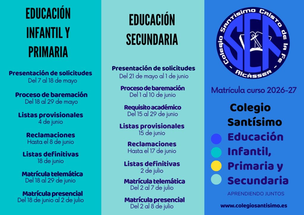 Calendarios de admisión para educación infantil, educación primaria, educación secundaria obligatoria y bachillerato