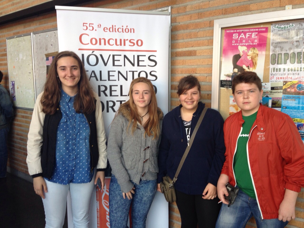 El sabado 18 de Abril cuatro alumnos de 2º ESO( Alba León, Isabel Aparisi, Andrea Hernández y Edgar Romaguera) se han presentado al» concurso de relato corto jóvenes talentos» que la empresa coca cola organiza desde hace años.